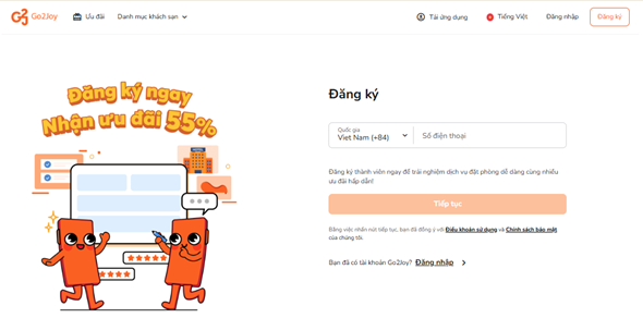Để đặt phòng trực tuyến, người sử dụng dịch vụ có thể không cần đăng ký tài khoản hoặc tiến hành đăng ký tài khoản để nhận các ưu đãi thành viên của website Go2Joy.vn, theo dõi đặt phòng, đánh giá và có những trải nghiệm dịch vụ tốt hơn trên website.
