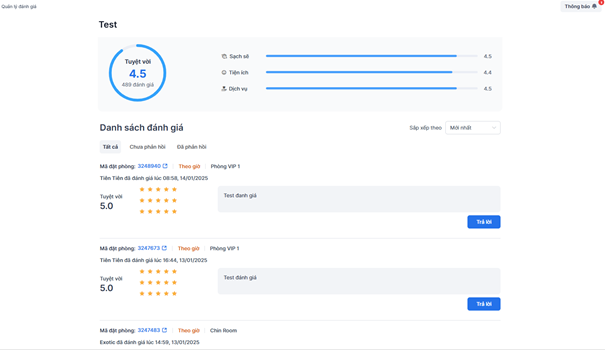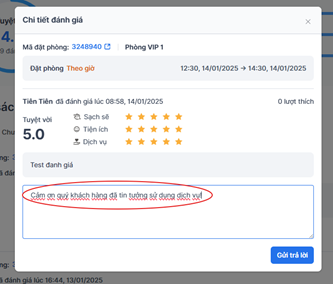 Khách hàng nhấn nút “Đặt phòng”, sau đó kiểm tra thông tin đơn hàng.