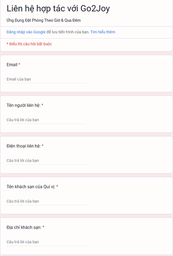 Website Go2Joy.vn – Đặt phòng theo giờ (sau đây gọi là “Website Go2Joy.vn”) là Website cung cấp dịch vụ thương mại điện tử thuộc sở hữu của Công ty Cổ phần Go2Joy Việt Nam (sau đây gọi tắt là “Công ty”/ “Go2Joy”) cung cấp dịch vụ đặt chỗ ở trực tuyến (sau đây gọi tắt là “dịch vụ”).